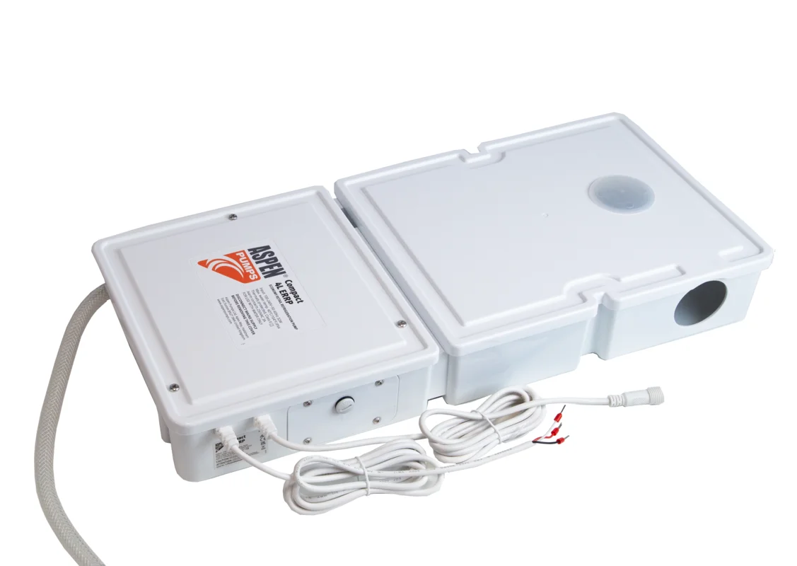 Die Aspen Compact 4L ERRP (Extended Run and Riser Pump) ist eine leistungsstarke und vielseitige Tauwasserpumpe, die eine zuverlässige Lösung für die Kondensatentsorgung bei mittleren bis größeren Split-Klimaanlagen und Luftentfeuchtern darstellt. Dieses Modell kombiniert eine robuste Pumpleistung mit einem kompakten, integrierten 0,4-Liter-Reservoir. Das Top Inlet (oberer Einlass)-Design ermöglicht eine einfache und flexible Installation, während der integrierte Alarmkontakt maximale Betriebssicherheit gewährleistet.