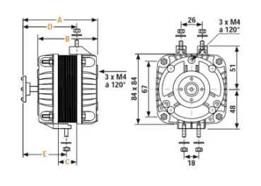 5: hintere Befestigung 3 Bohrungen 120° - M4Universal-Motor (Spalt-Motoren 4-polig)Typ GT 5E- bis GT 25.5A - AXMit 2 verschiedenen Fußbefestigungen, 5 Befestigungsmöglichkeiten1+2: Füße (18 + 26 mm)3: 4 lange Schrauben für Ring/Gitter4+5: vordere und hintere Befestigung 3 Bohrungen 120° - M4Typ GT 34 E - 3Mit 3 verschiedenen Befestigungsmöglichkeiten1: Füße (18 mm)3: 4 lange Schrauben für Ring/Gitter5: hintere Befestigung 3 Bohrungen 120° - M4 FrigoXpert e. K.
