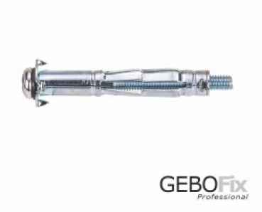 Hohlraum Metalldübel L5-70/1, 10x65, f. PS 18-32mm, M5x70, 100 Stk.Hochwertiger Hohlraumdübel aus Metall mit metrischerLinsenkopfschraube.Die Spreizarme sorgen für gute Lastverteilung, gewährleistenhohe Tragfähigkeit und erlauben ein mehrfaches Lösen undBefestigen ohne Reduzierung der Tragfähigkeit.Zwei Krallen am Dübelrand verhindern ein Mitdrehendes Dübels und fixieren ihn in der Gipskartonplatte.--- Technische Daten ---Material: Stahl, verzinktBohrloch:10 mmDübellänge:65 mmSchraube:M5x70für Plattenstärke:18-32 mmverpackt im Karton zu 100 Stück.Es wird die Verwendung der Montagezange TK30empfohlen. Mit der Zange wird die Schraube aus demDübel gezogen, die Spreizarme klappen aus undfixieren den Dübel an der Plattenrückwand.