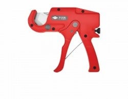 KNIPEX Rohrschneider fuer Kunststoffrohre 6-35 mm> zum gratfreien Schneiden von Kunststoffrohren(z. B. Kunststoff-Panzerrohre) mit Ø 6 - 35 mm> nicht zum Kabel schneiden geeignet> Messer austauschbar und aus jeder Position zurückholbar> geringer Kraftaufwand durch spezielle Schneidengeometrieund optimale Übersetzung> ermüdungsarmes Arbeiten durch ergonomische Griffgestaltungund schrittweisen Messervorschub> Gehäuse: Aluminium-Druckguss, rot lackiert> Messer: Spezial-Werkzeugstahl, ölgehärtet--- Technische Daten ---Länge:185 mmGehäuse:Aluminium Druckguss, rot lackiertScheidkapazität6-35 mmScheidenlänge35 mmGewicht:583 g