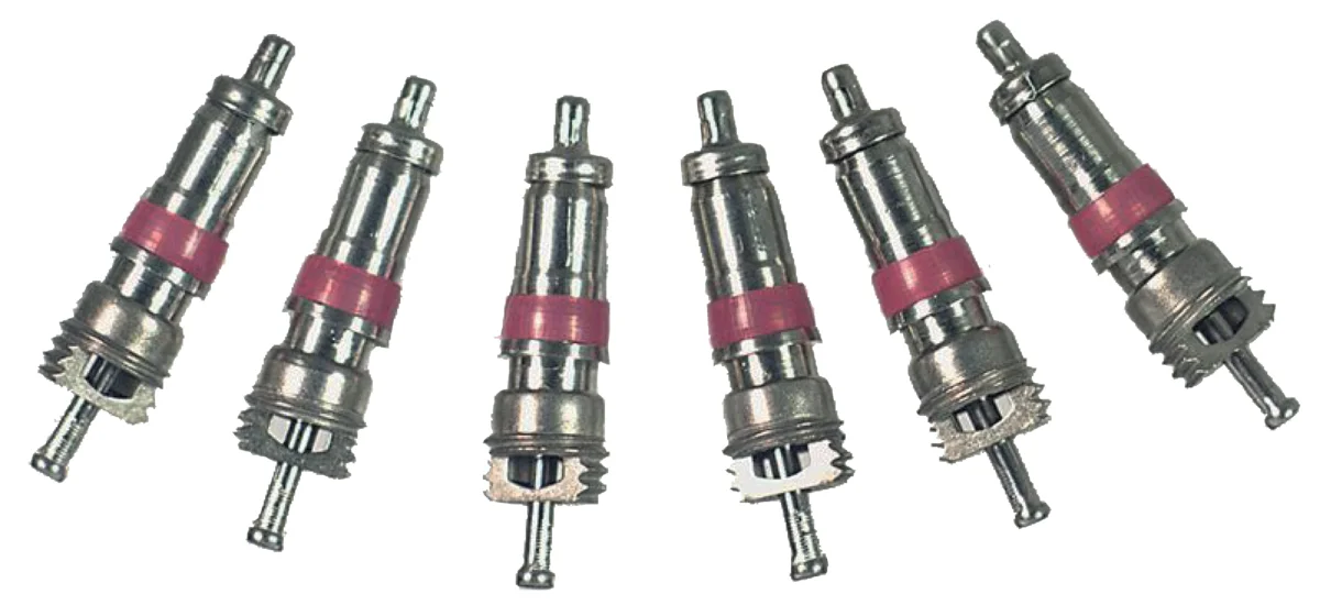 AbmessungenGesamtlänge20 mmAllgemeinAnwendungzweiteilig, KlimaanlagenAnzugsdrehmoment0,25 bis 0,3 NmBauformVentilkernBeständig gegenKohlendioxid Ethanol EsterölKältemittelR32 R12 R134a R1234yF R404A R407C R410A R417A R502 R507MaterialPTFE rotKonus CRTeller Stahl rostfreiFederdrahtTypA-31999-R/100DruckDruckbereichbis 20 barErläuterung 2TemperaturdatenTemperaturbeständigkeit-40 bis +100 °CSpitze ca. 120° / Erläuterung 1Erläuterung 1: Kurzzeitige SpitzenbelastungErläuterung 2: Bei ausschliesslich statischer Belastung (ohne Entlüften) bis 60 bar.Zulässige Leckage nach ETRTO mit entsprechender Ventileinsatzbohrung 0.2 cm3/min