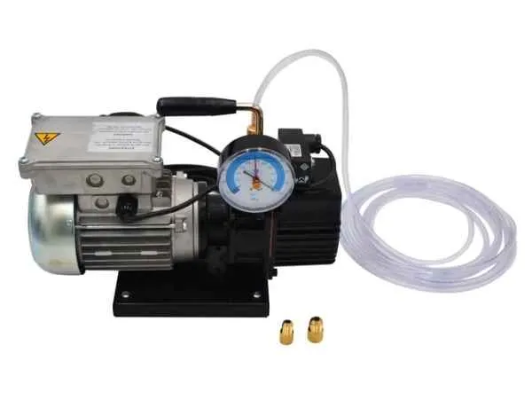 Vakuumpumpenöl ISO VG 68 Corena S2 P68 1L FlascheIm Lieferumfang enthalten sind eine Wigam Vakuumpumpe RS3D-EX, ein Adapter 5/16" SAEM X 1/4" SAEF und ein Adapter 3/8" SAEM X 1/4" SAEF.Die Vakuumpumpe RS3D-EX von Wigam ist eine robuste und trotzdem handliche und leichte 2-stufige Drehschiebervakuumpumpe für den Einsatz mit brennbaren Gasen (ATEX Motor). Durch langjährige Weiterentwicklung sehr langlebig und perfekt geeignet für den harten Alltag eines Kältemonteurs.Ein ATEX Magnetventil sichert bei Stromausfall das Vakuum im System.Die Lieferung erfolgt mit Öl, ausreichend für eine Füllung.